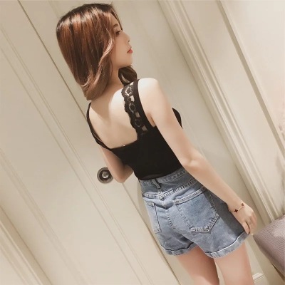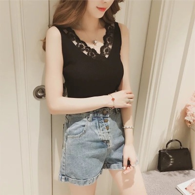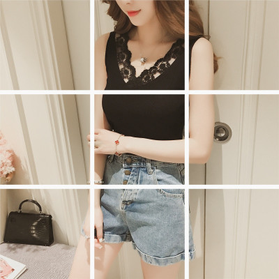 Spring and summer new Korean lace Halter bottoming blouse women's solid color versatile knitted vest top