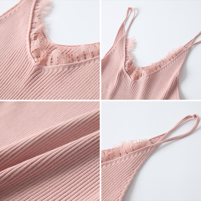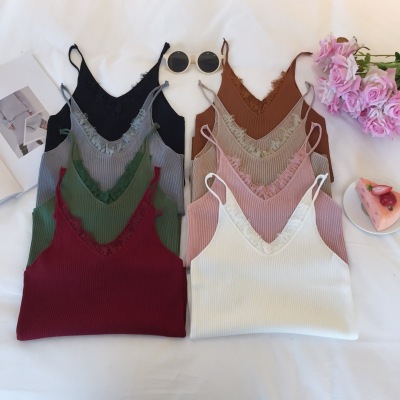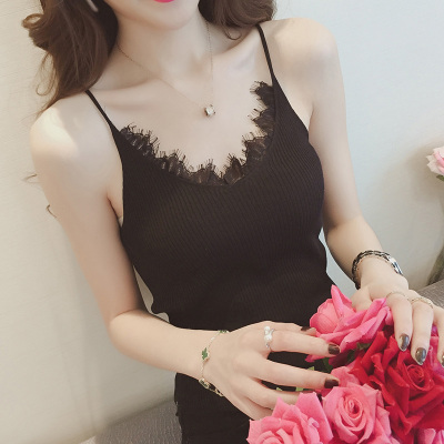 Black eyelashes, lace, patchwork neck, knitting suspender vest, women's short slim sleeveless base coat, spring