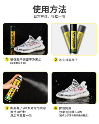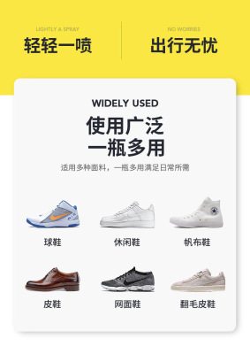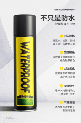 Shoes protection spray: an essential artifact in rainy days; invisible film prevents dirt and moisture; protects shoes from yellowing and fading