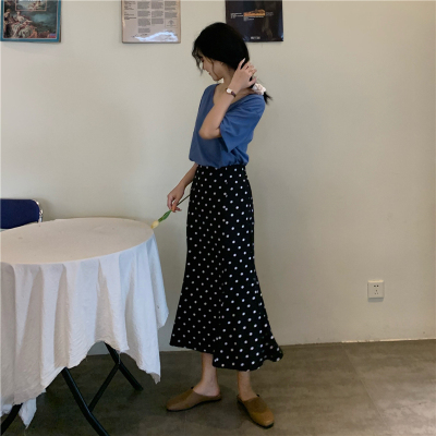 New style real shot real price take all kinds of Hepburn style retro wave point high waist fish tail skirt show thin character skirt