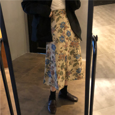 New style live shooting spring and summer new style floral loose and versatile skirt with large swing and elegant umbrella skirt