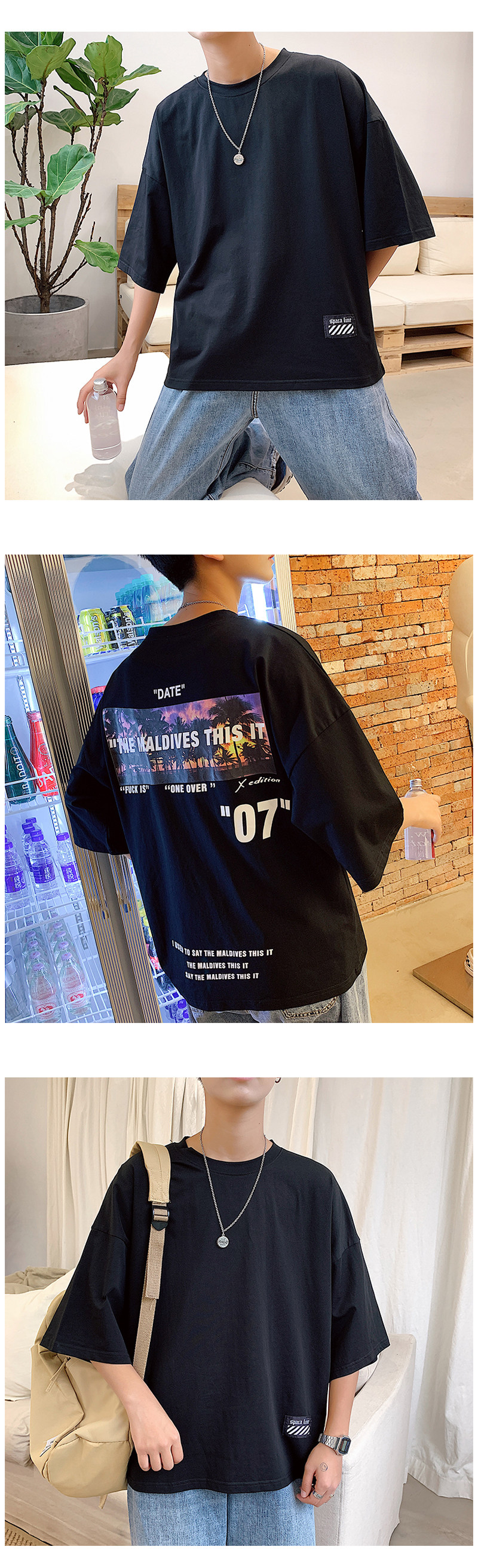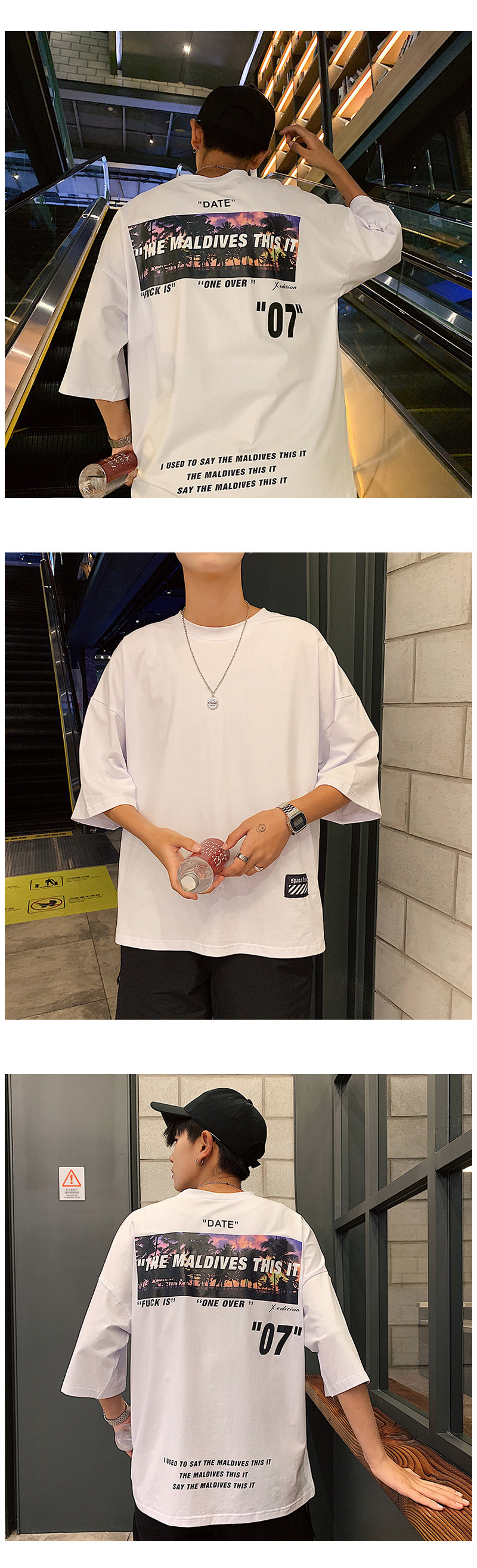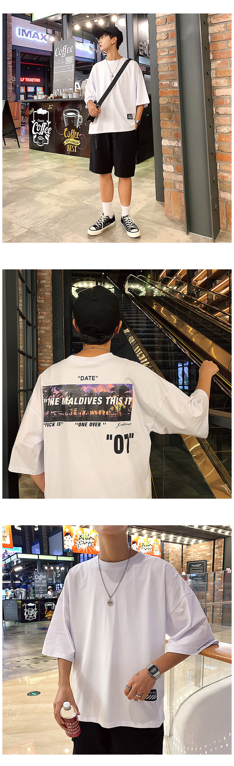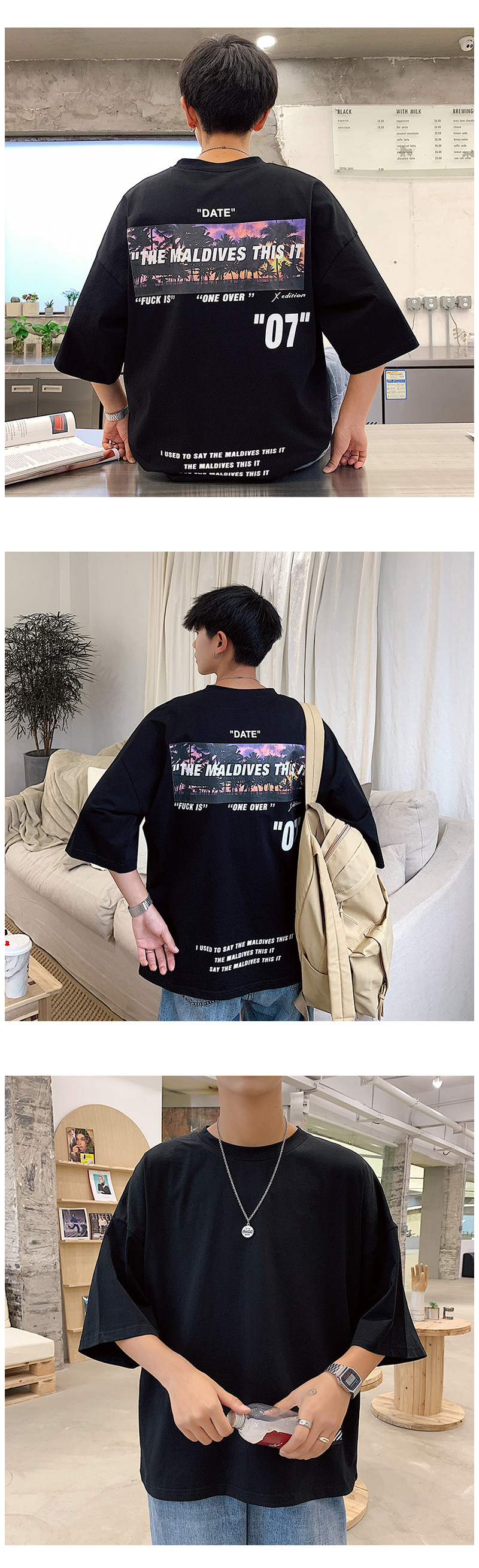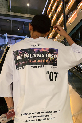 Summer trend brand short sleeve T-shirt for boys and teenagers in Hong Kong trend 5-sleeve hip hop loose half sleeve couple top
