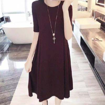 Summer short sleeve Korean dress for women 2019 new large size loose and thin A-line versatile mid length dress