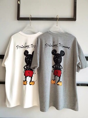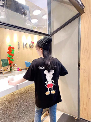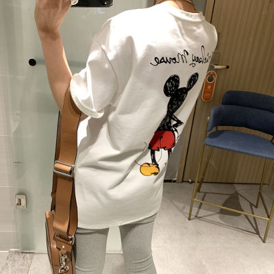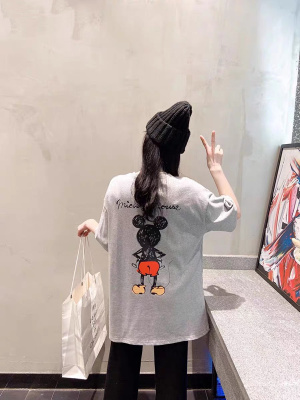 2020 medium long loose printed Mickey short sleeve T-shirt women's Pullover round neck versatile bottoming shirt women