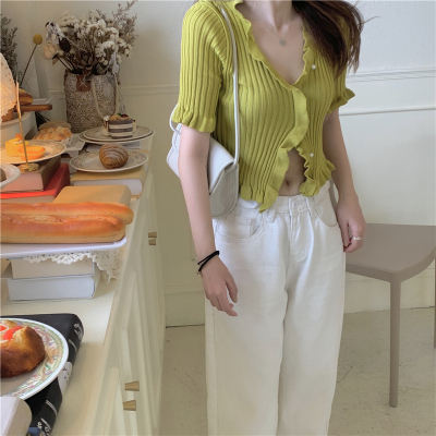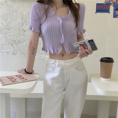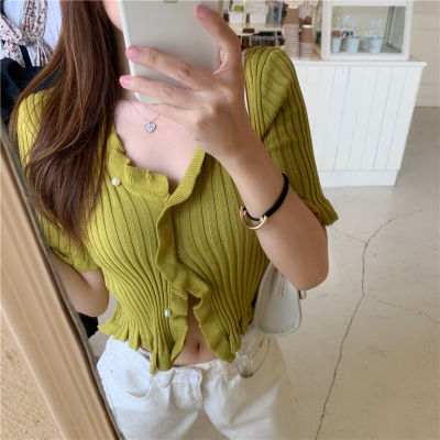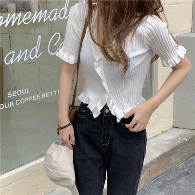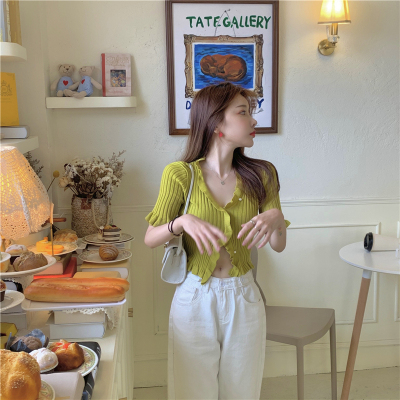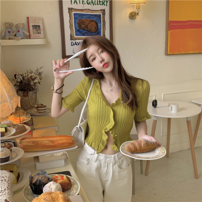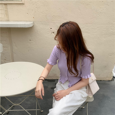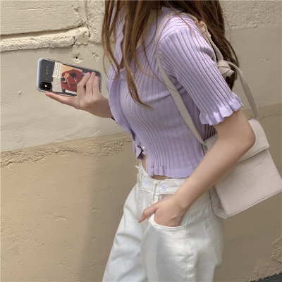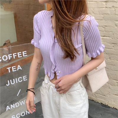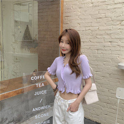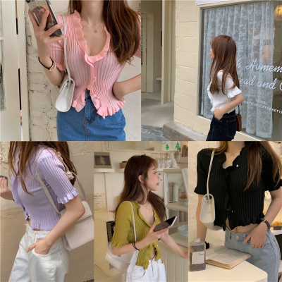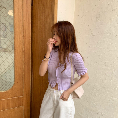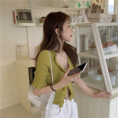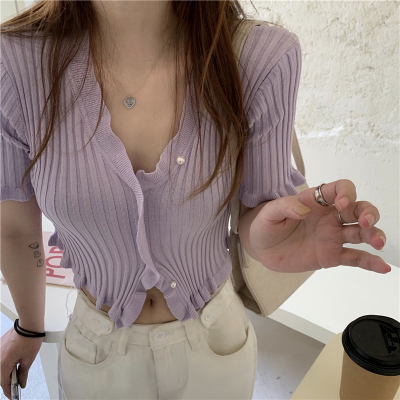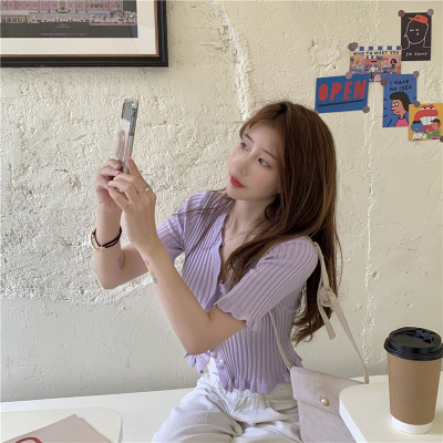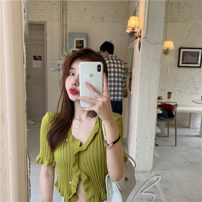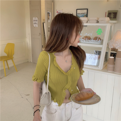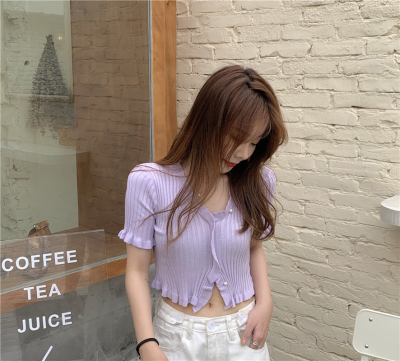 Real photo, real price, foreign style, small sexy color, slim and short knitted shirt