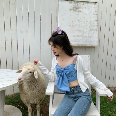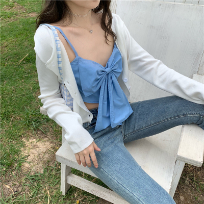 Real photo, real price, new style small fragrance sling, net red, thin and fashionable bow top