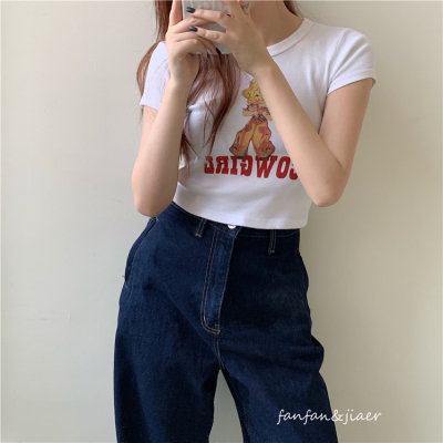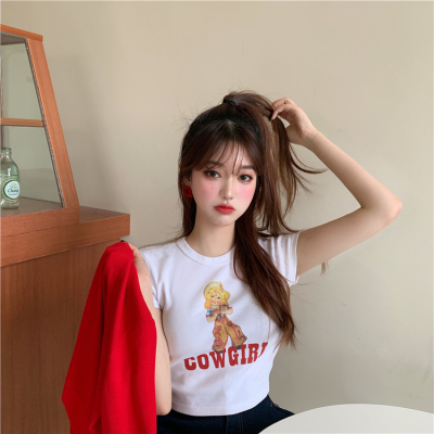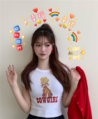 Real photo red short T-shirt white round neck short T-shirt printed short sleeve