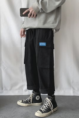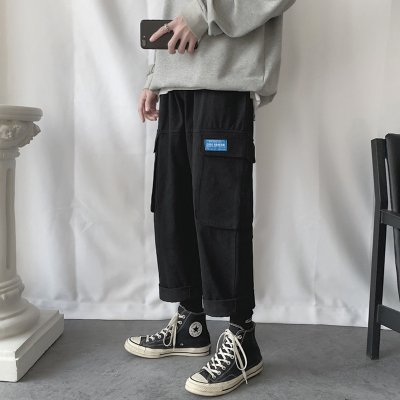 2020 spring pants men's Korean Trend big pocket casual pants men's loose straight tube casual pants