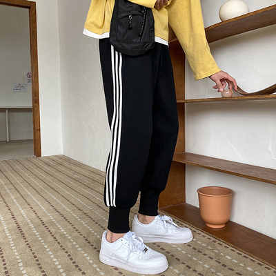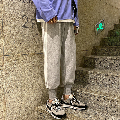 Drawstring Leggings men's sports pants AJ basketball three bar stripe patch loose and versatile closing casual pants 9-point pants