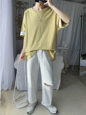 2020 new short sleeve men's simple and versatile ins round neck T-shirt summer Hong Kong flavor small fresh top