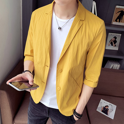 Summer seven sleeve casual Blazer Jacket men's Korean Trend handsome casual yuppie handsome suit slim fit middle sleeve