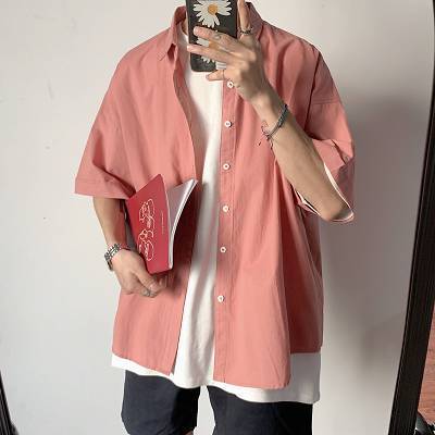 Summer original night style shirt men's trend Korean Hong Kong Style versatile short sleeve casual half sleeve top five sleeve shirt
