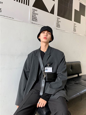 Spring and autumn overage pinstripe suit coat men's Korean Trend casual small suit ins single West Top