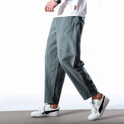 Chinese Spring and summer linen pants men's Capris loose casual pants Nepalese radish Pants Cotton hemp lantern pants trend