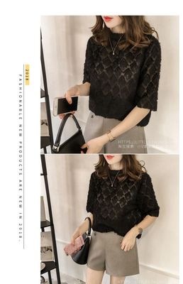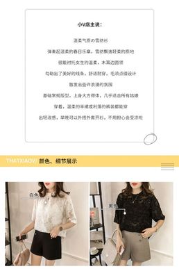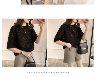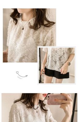 Summer 2020 Korean version burr Flower Chiffon Blouse women's short sleeve top loose solid color lace base