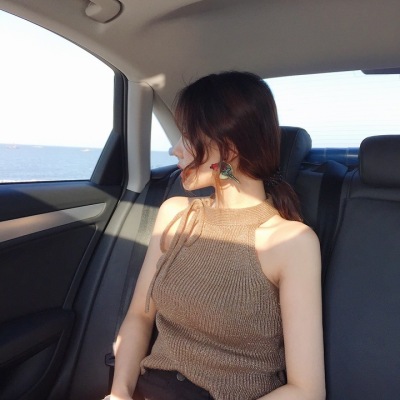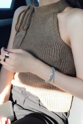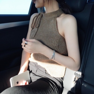 Sleeveless Halter waistcoat for women wearing ins super hot fashion sexy off the shoulder Knitted Top with trampoline in summer