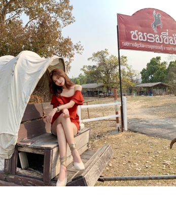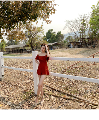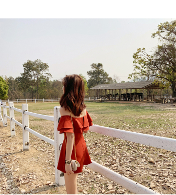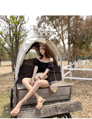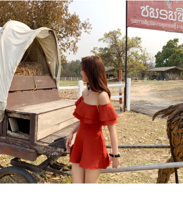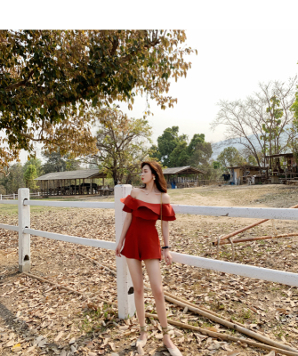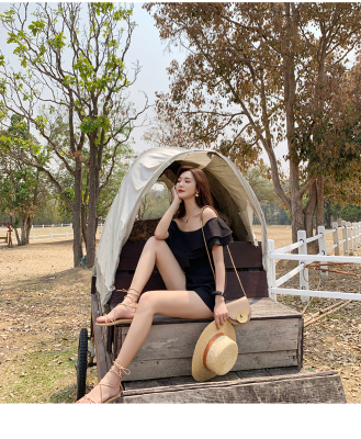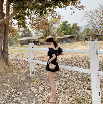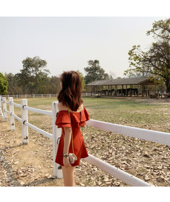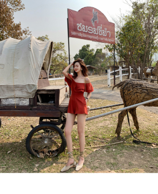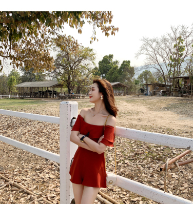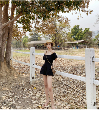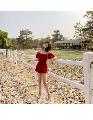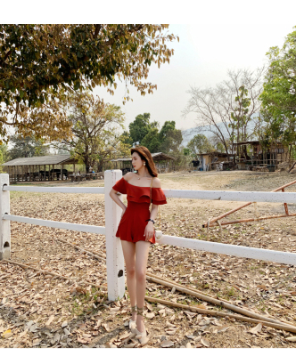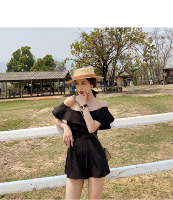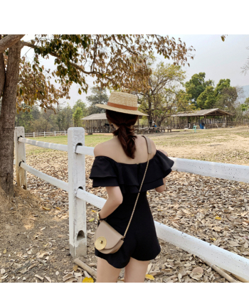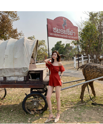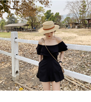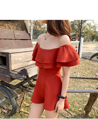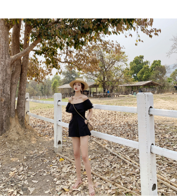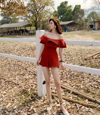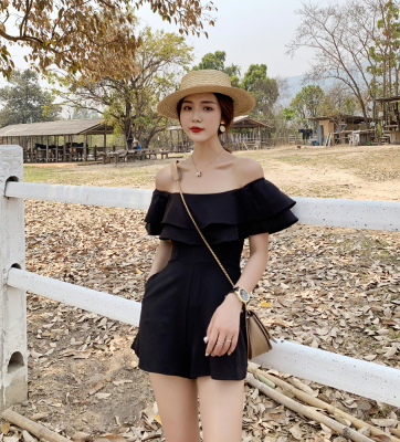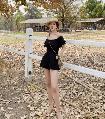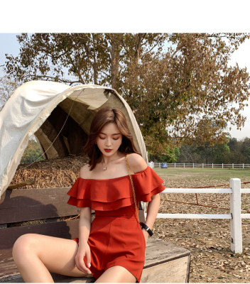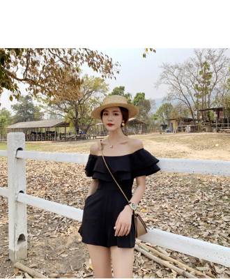 Actual photo: 2020 summer ins net red sexy holiday off shoulder Ruffle high waist loose pants one piece pants
