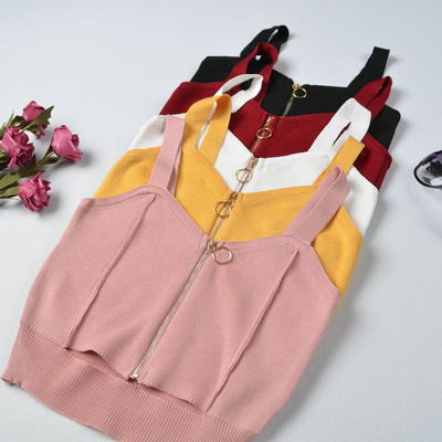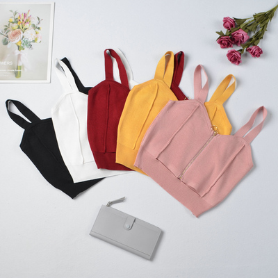 Take a picture of summer outside wearing knitted suspender women's net red sexy back top bottoming vest