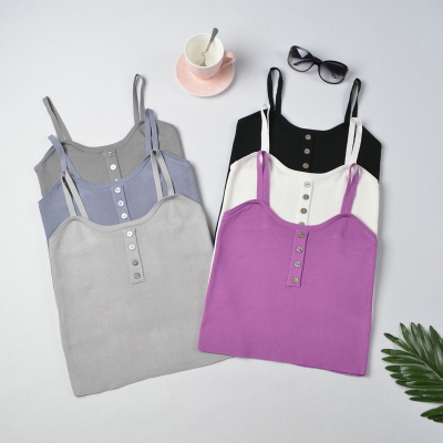 Real photo real price Korean button sleeveless knitting suspender vest for women to wear inside and outside