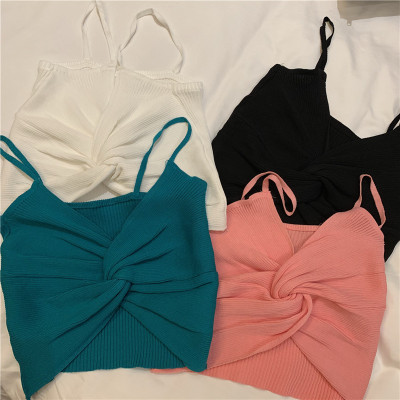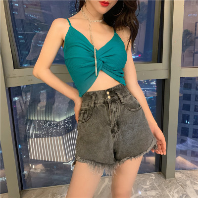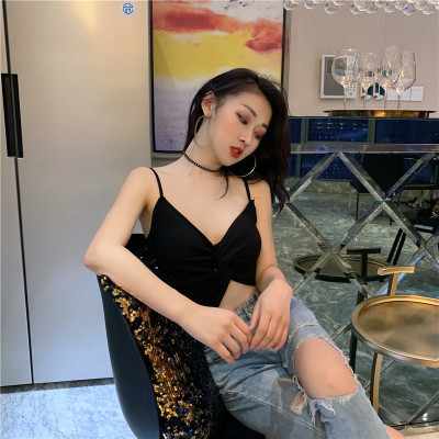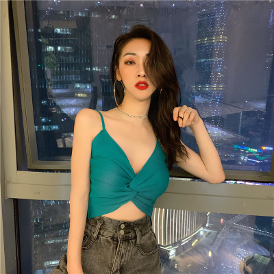 Real photo sexy and versatile cross navel Halter tank top bottom short top real price