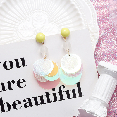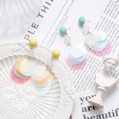 Silver needle, net red, shiny candy, dazzling color, sequins, long earrings, temperament fairy, Korean versatile Tassel Earrings