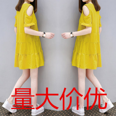 Dress women's summer shoulder drain Korean new style dress is thin, white and not tall