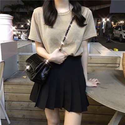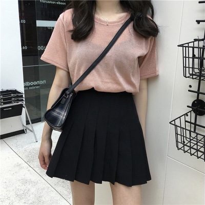Summer new high waist pleated skirt women's Korean version solid color loose and thin all-around fashion chic student skirt