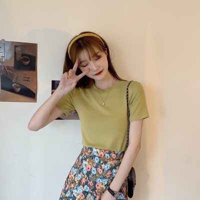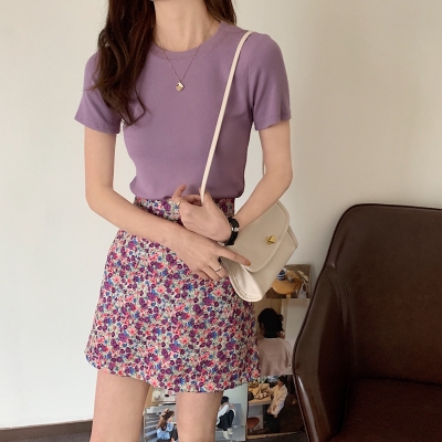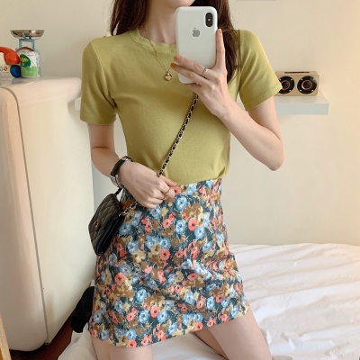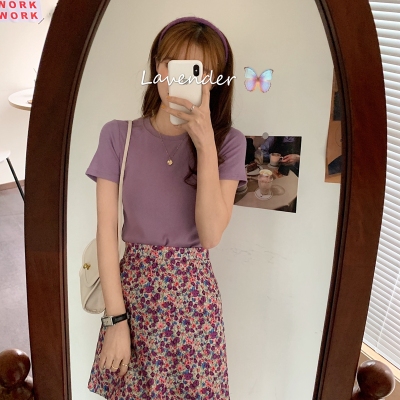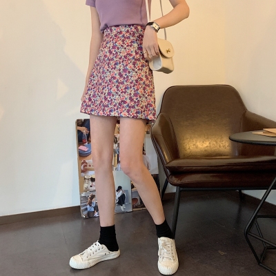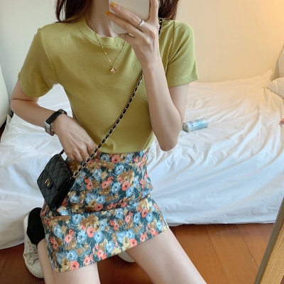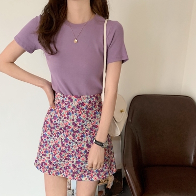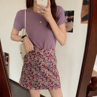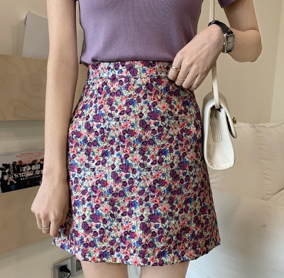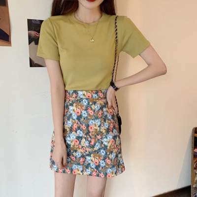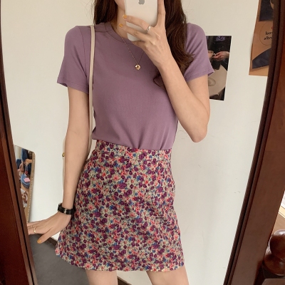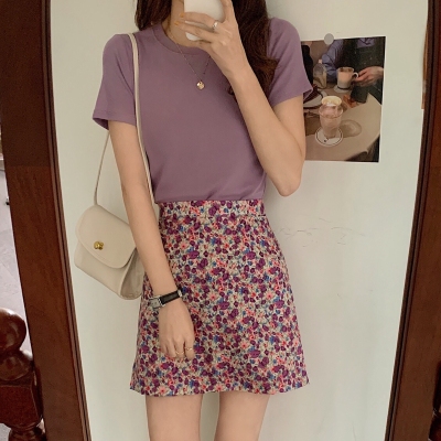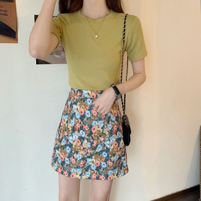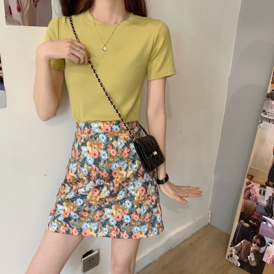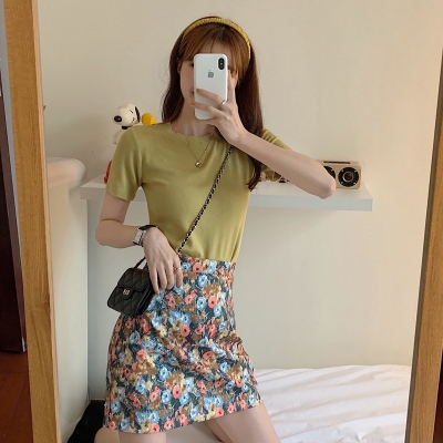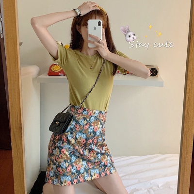 Real photo, real price, new floral skirt, A-line skirt, retro high waist, slim + versatile short sleeve T-shirt bottoming