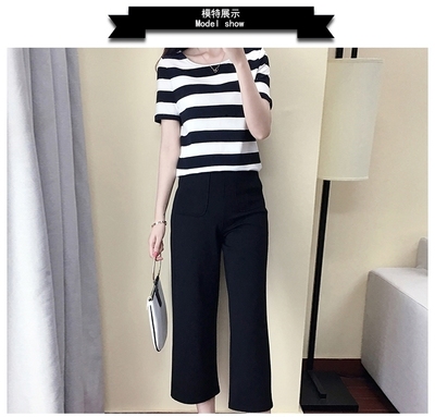 Wide leg pants two-piece women's nine point pants short sleeve suit high waist Korean version leisure temperament two-piece set