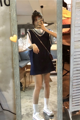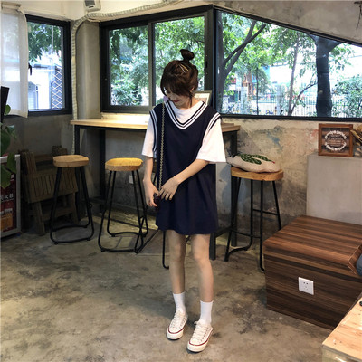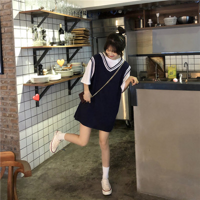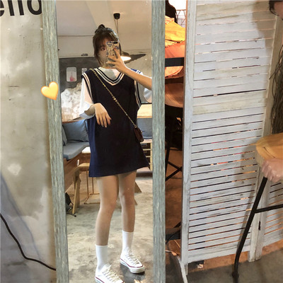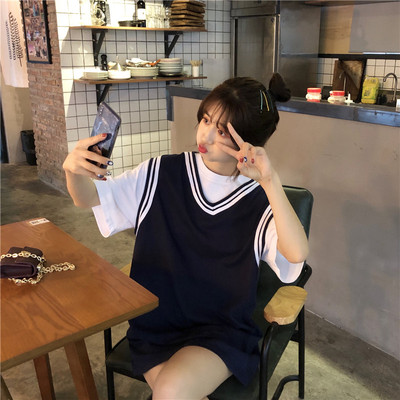 Official picture summer Korean version medium length vest skirt + solid T-shirt 2019 new student super sweet