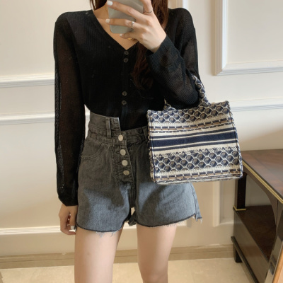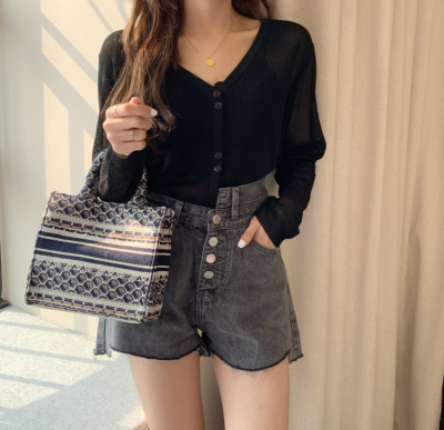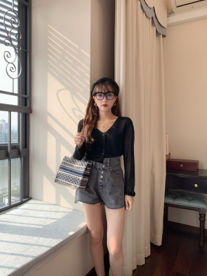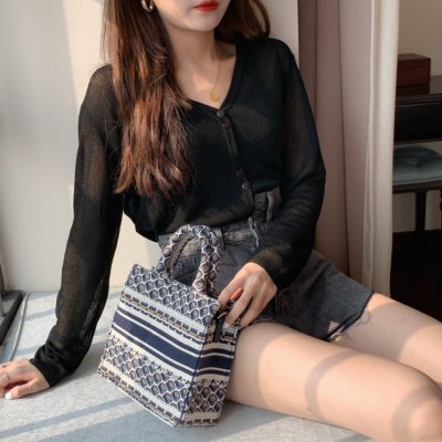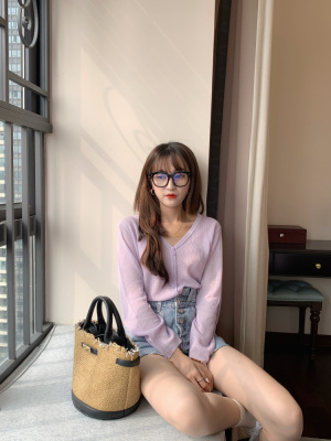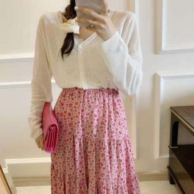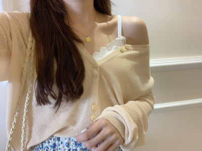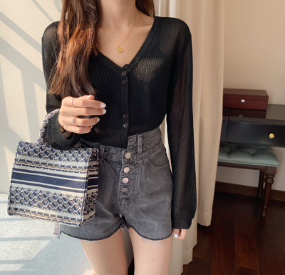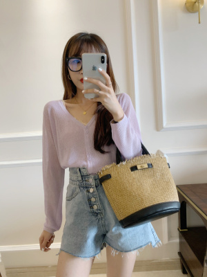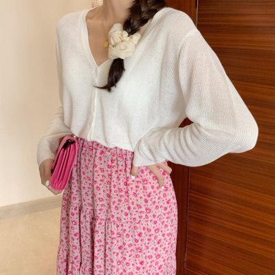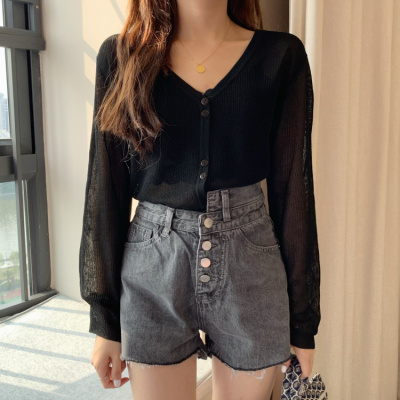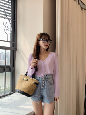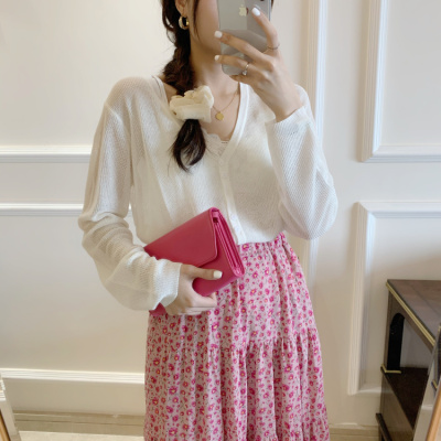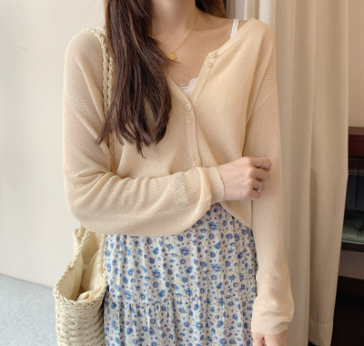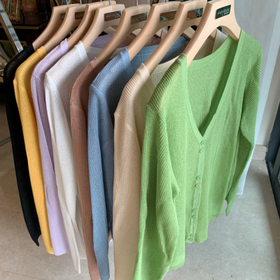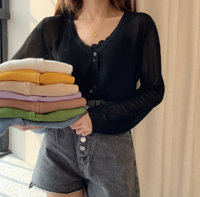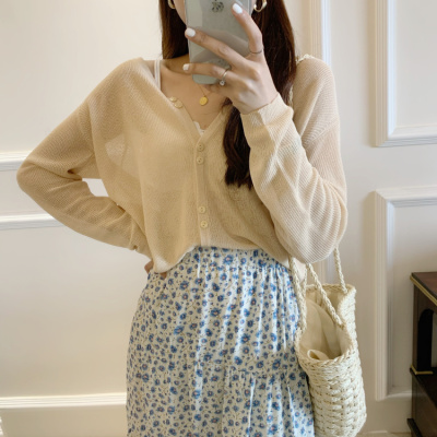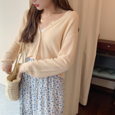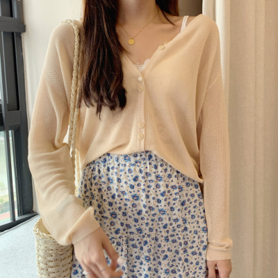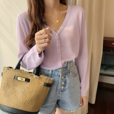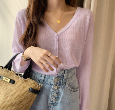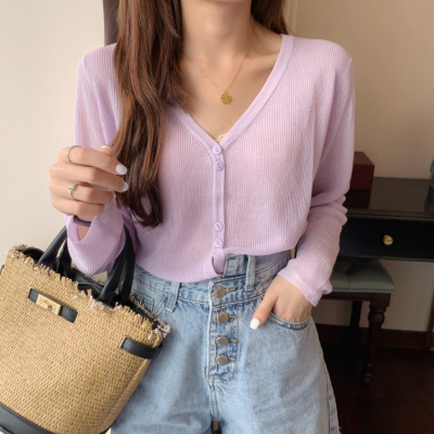 2020 Korean spring and summer new style art all-around V-Neck long sleeve sun proof elastic T-shirt cardigan woman