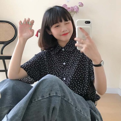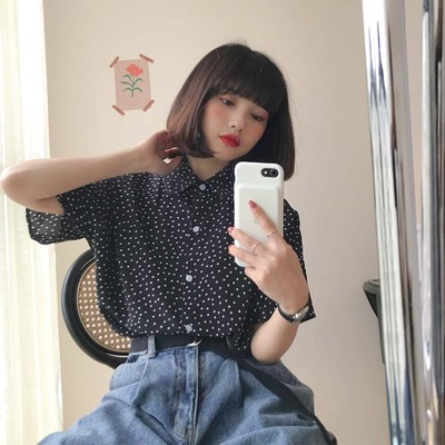 Photo thin Chiffon Shirt Short Sleeve Polka Dot Shirt