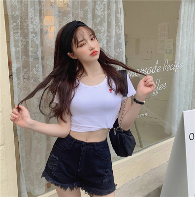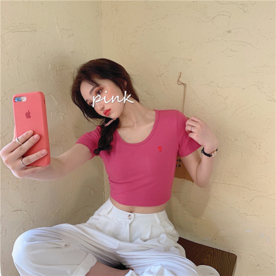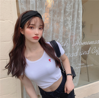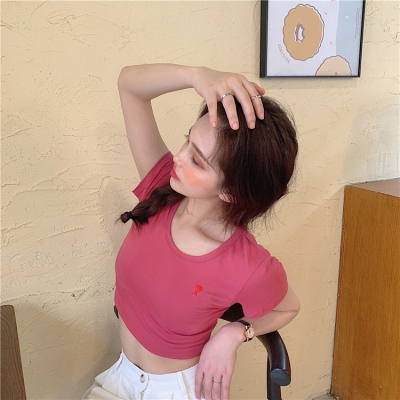 Real price photo ~ video ~ new love embroidery and short T-shirt women's slim short sleeve top