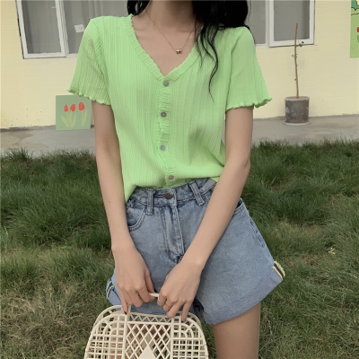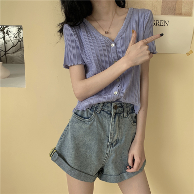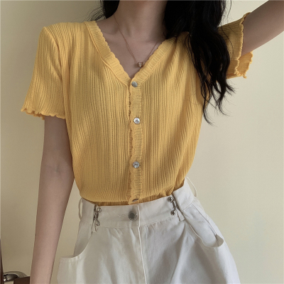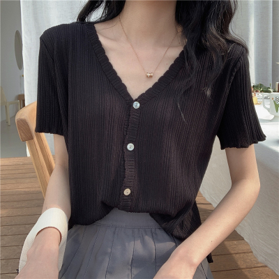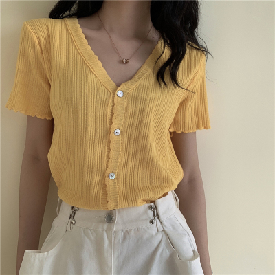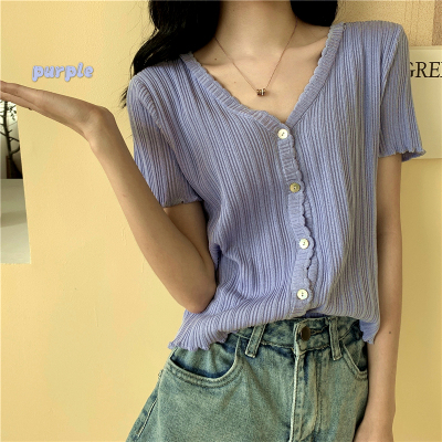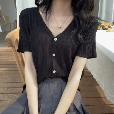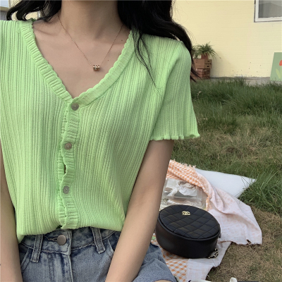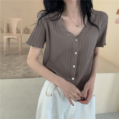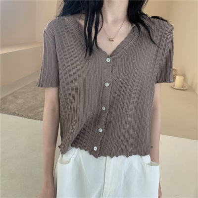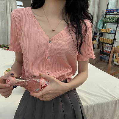 Real photo real price lace short knitted cardigan V-neck short sleeve top for women