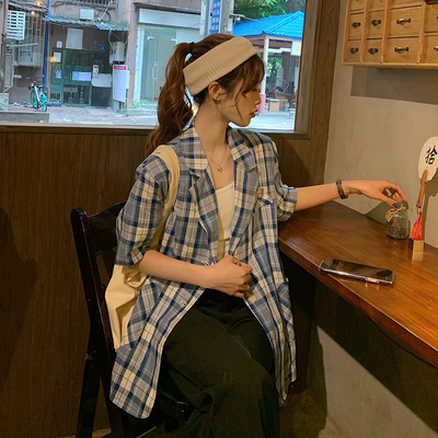 Real photo real price: 2020 new Korean Plaid short sleeve suit thin coat