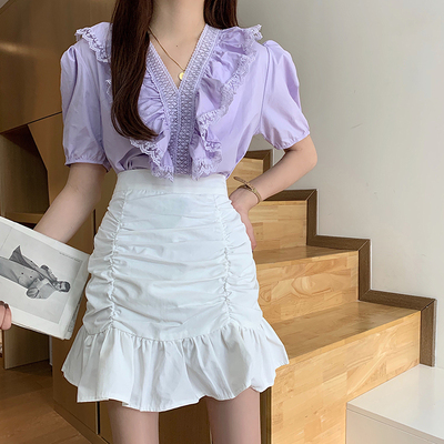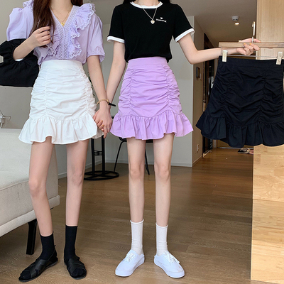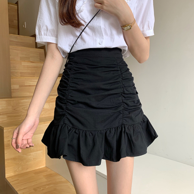 Real photo real price Korean version chic pleated skirt with high waist and thin A-line all-around short skirt with buttocks