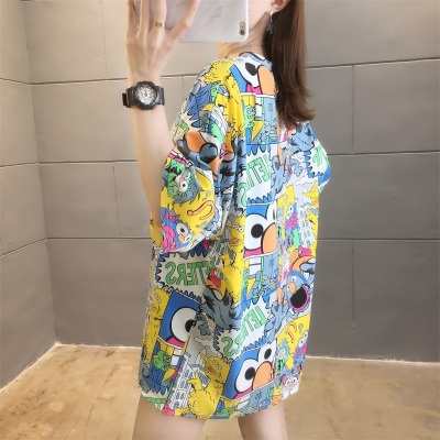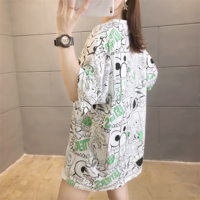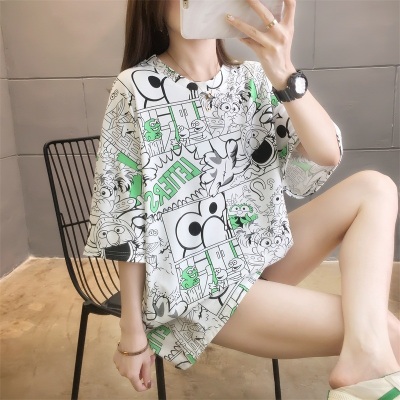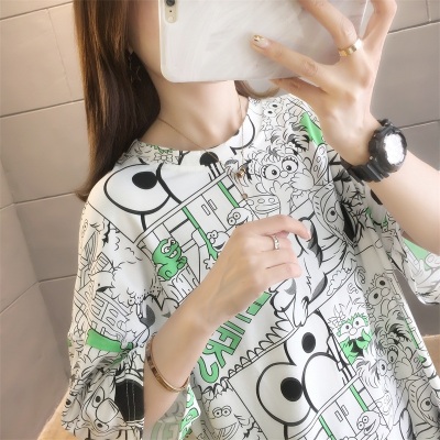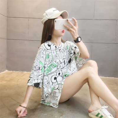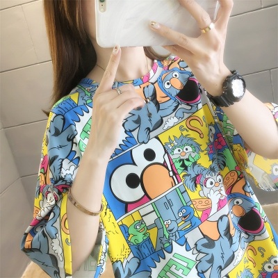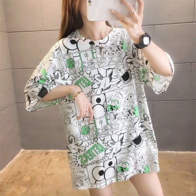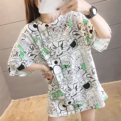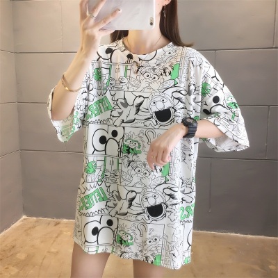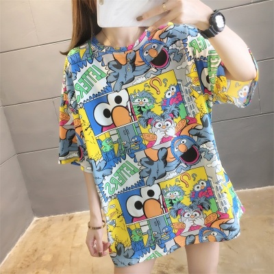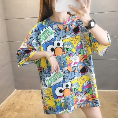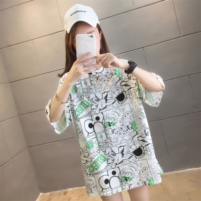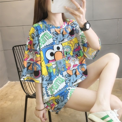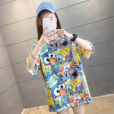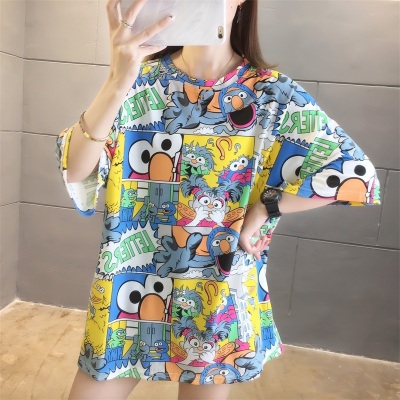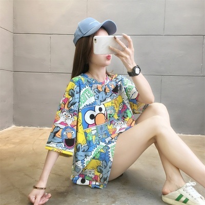 Real shot net red super hot CEC short sleeve mm spring summer mid long T-shirt women's Korean loose cartoon top trend