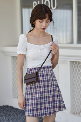 Real photo Purple Plaid Skirt girls' sweet high waist A-line pleated skirt in 2020 summer