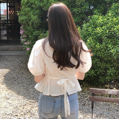 South Korea 2020 spring and summer ladies style Back Tie Shirt