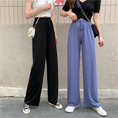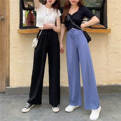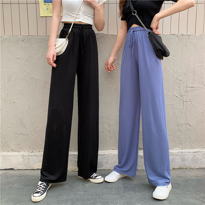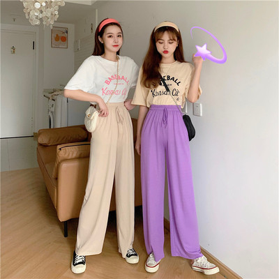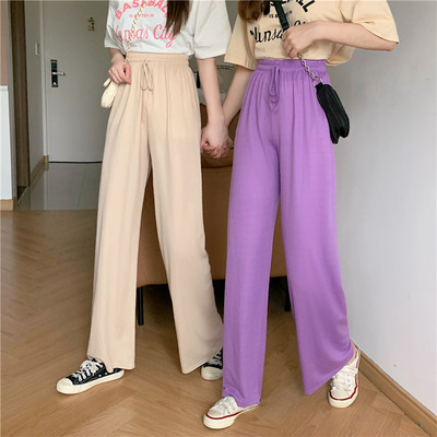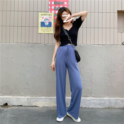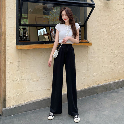 Real photo of new Korean elastic waist casual pants straight tube drape loose thin pants