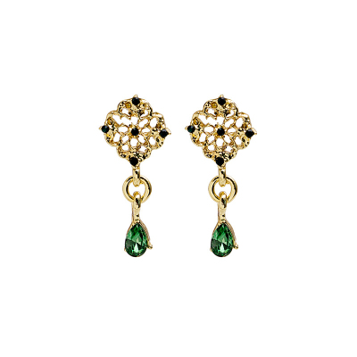 925 silver needle retro grandmother green water drop gem light luxury Earrings Baroque elegant antique Earrings