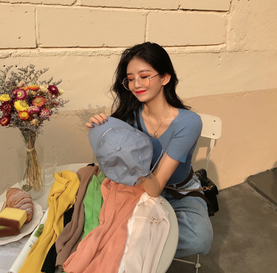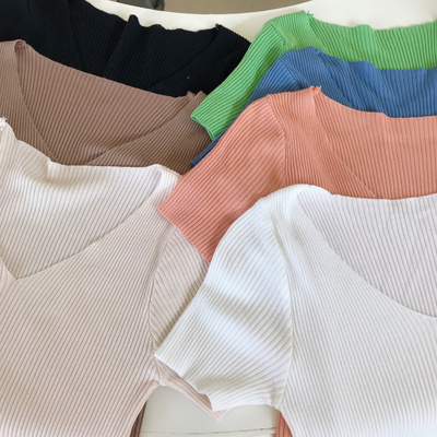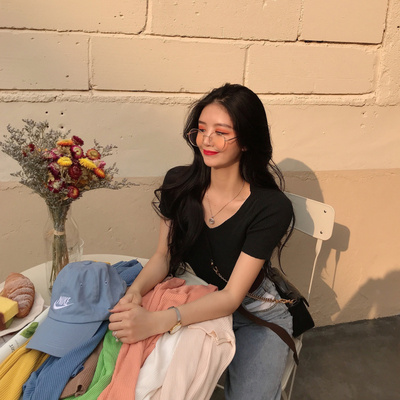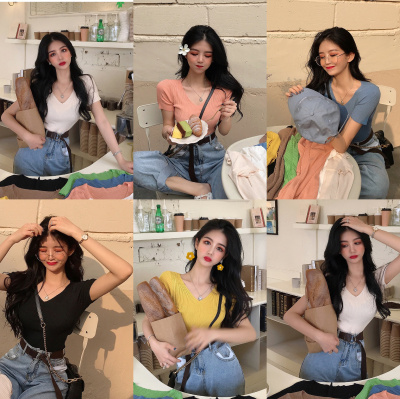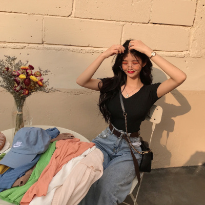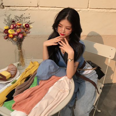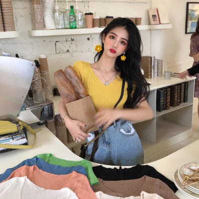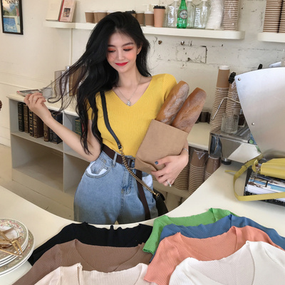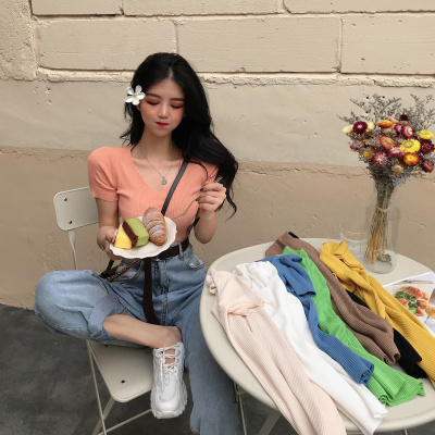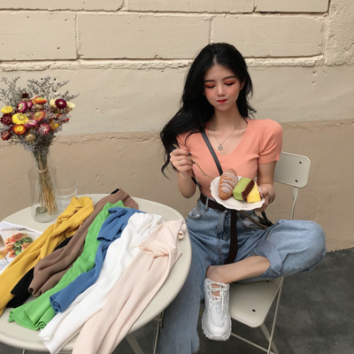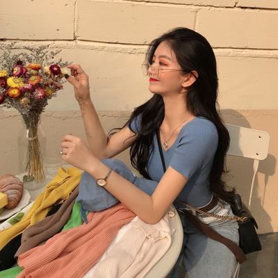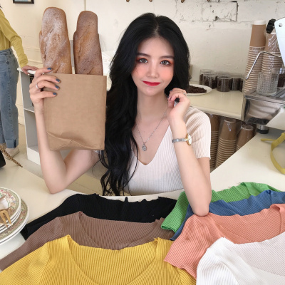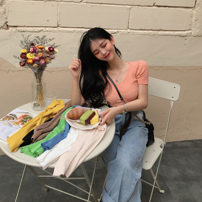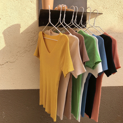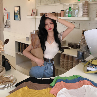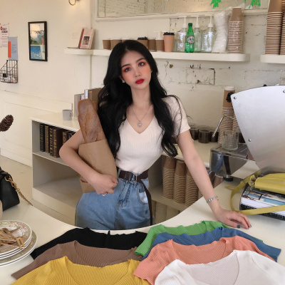 South Korean ins summer basic 2020 women's V-neck icy silk top knitting pushes the real price