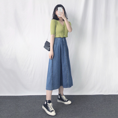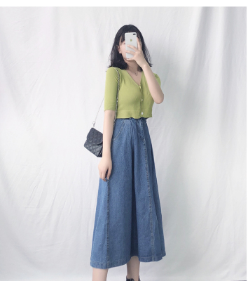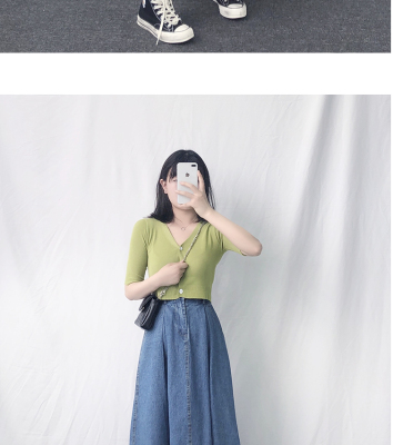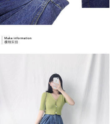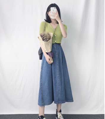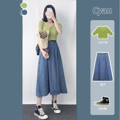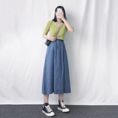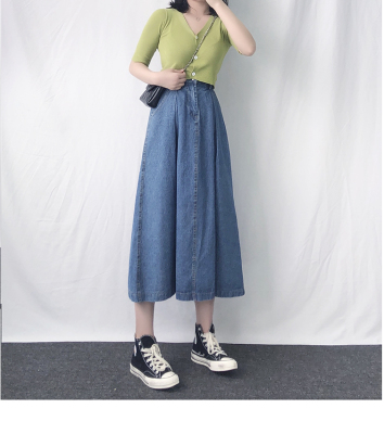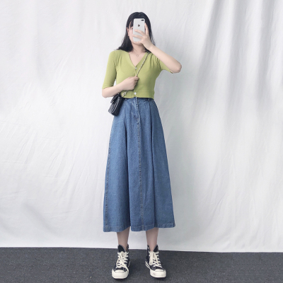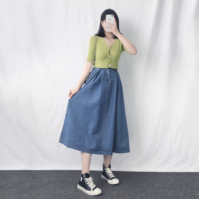 Real photo of big fat sister jeans skirt women's pure autumn half length skirt high waist thin skirt retro medium length