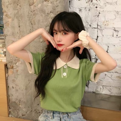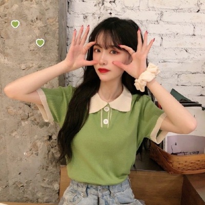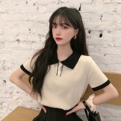 872 real price; summer new Japanese super fire knitting short sleeve small T-shirt student bottomed polo