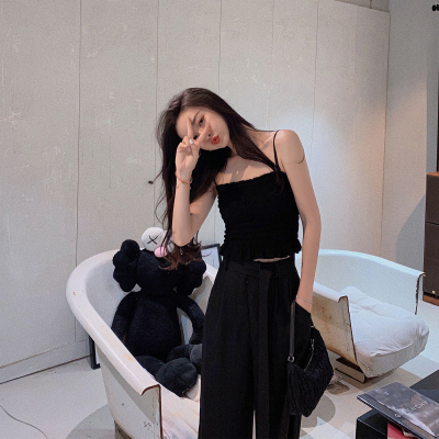 Summer hot girl Qian Fu's House Sydney custom sexy summer pleated wooden ear side suspender vest