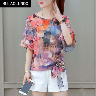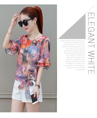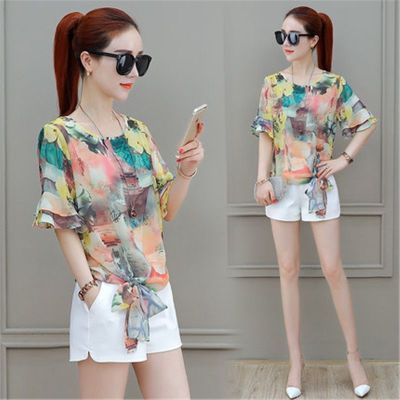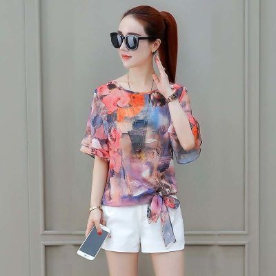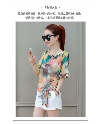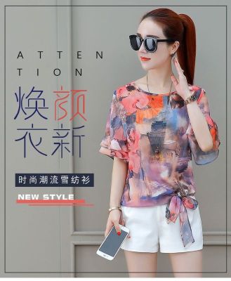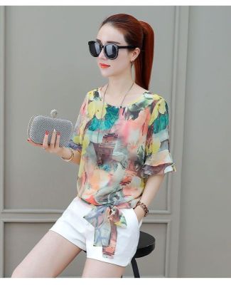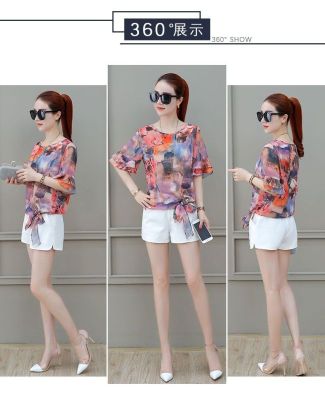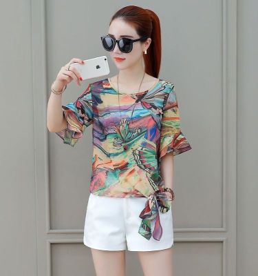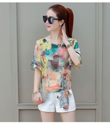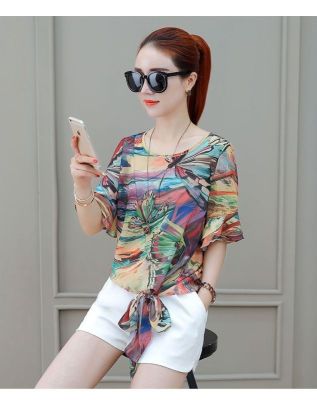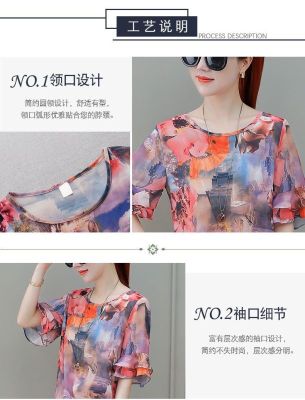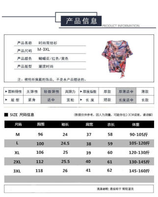 Ice silk T-shirt 2020 new summer printed short sleeve medium length inch clothes large loose top women's wear