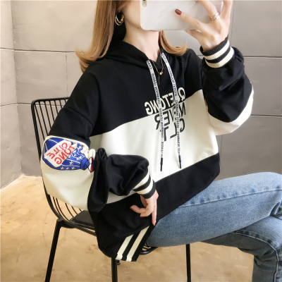 Real shot 25 cotton 2020 Korean autumn new style Korean version medium length loose embroidered hooded sweater women's large