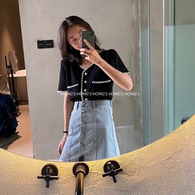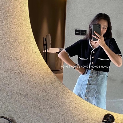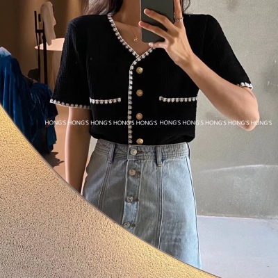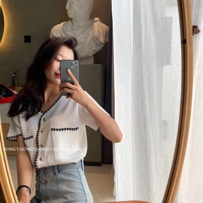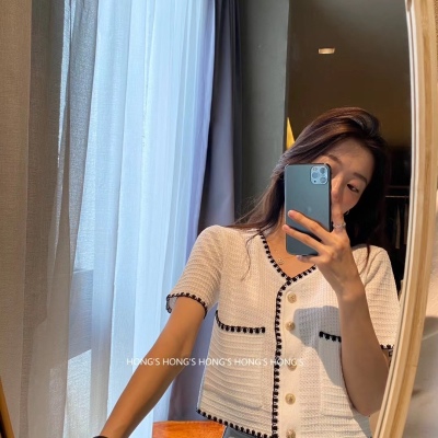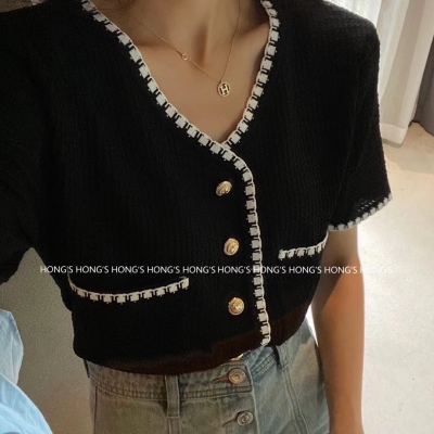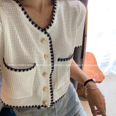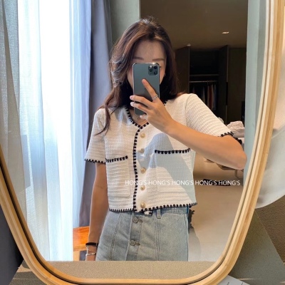 Hong's 2020 summer new small fragrance short sleeve ladies temperament short woven top thin cardigan