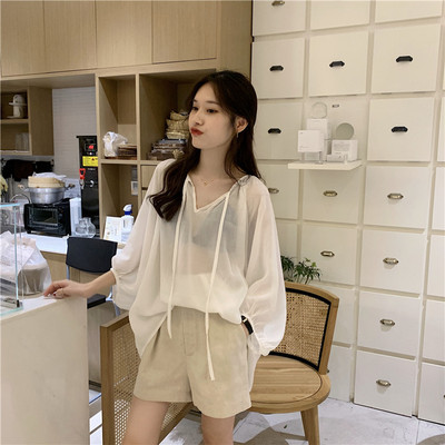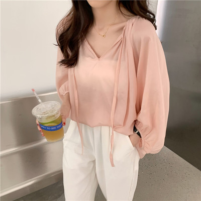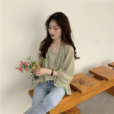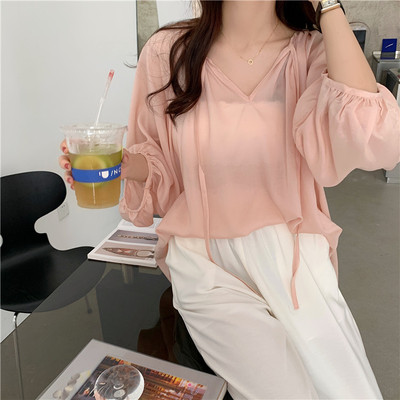 Real price loose Lantern Sleeve bandage long sleeve sunscreen top