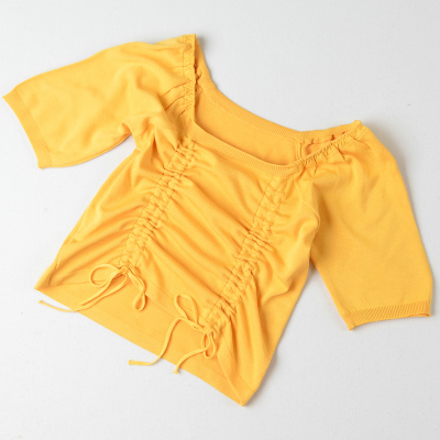 Real price shot Korean Short Sleeve T-Shirt Top with drawstring and exposed navel